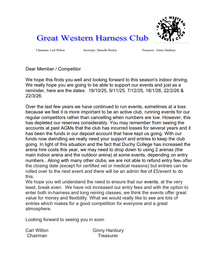 Non-members must be insured to take part in training for horse driving trials: GWHC/BC affiliated club